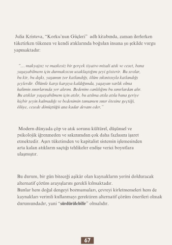 tüketirken tükenen ve kendi atıklarında boğulan insana şu şekilde vurgu