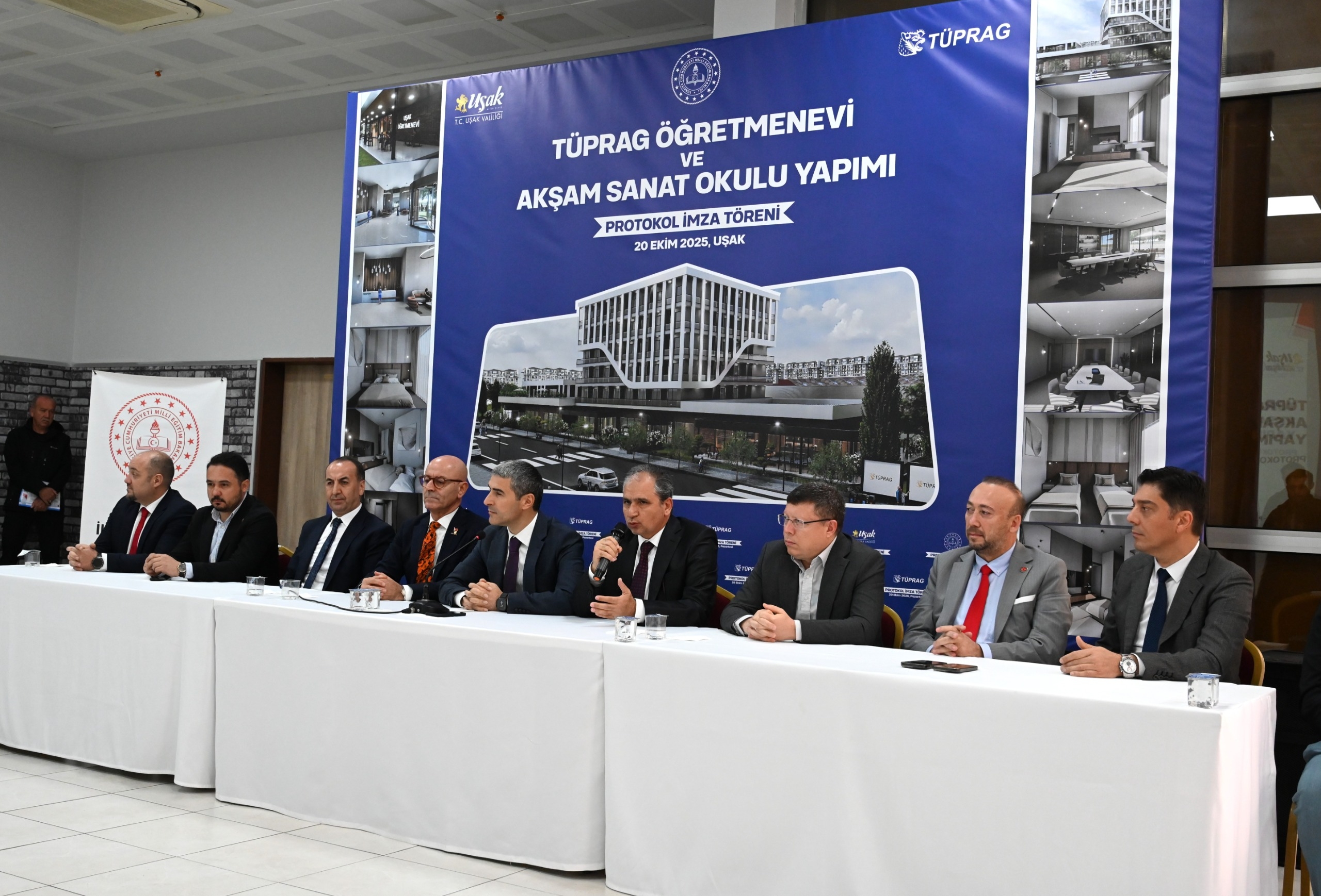 Uşak Valiliği himayelerinde, TÜPRAG Metal Madencilik Sanayi ve Ticaret AŞ Uşak Şubesi ile İl Millî Eğitim Müdürlüğü arasında "TÜPRAG Öğretmenevi ve Akşam Sanat Okulu Yapımı Protokolü" imzalandı.